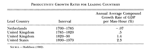 This is the price-dual to the evidence on output quantities that first motivated me to rethink the theory of growth. See for example, table 1 from my 1986 JPE paper:
