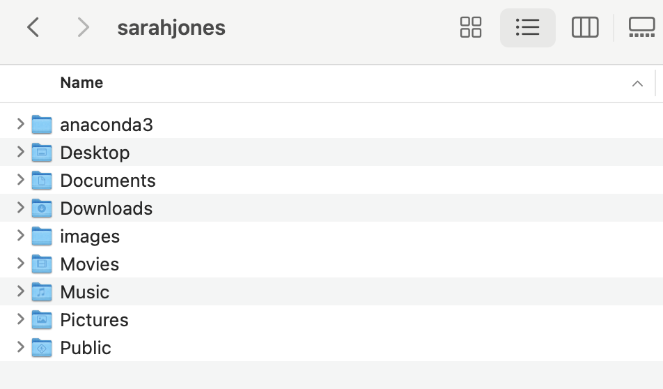 With big text, here is the default Finder display when for the Home folder for someone named Sarah Jones: