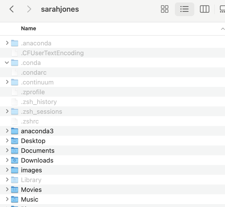 You may not have a folder called anaconda3. That’s ok. All that matters is that you see a file named .zshrc. If you don’t, skip to the Troubleshooting section at the end.