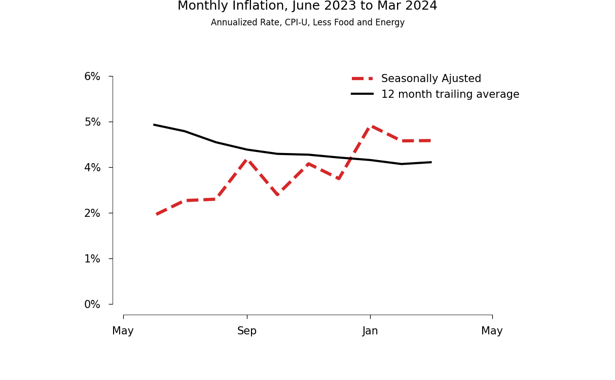 The monthly data suggested that inflation was moving up. The 12-month average suggested that progress in bringing down inflation had come to a halt.